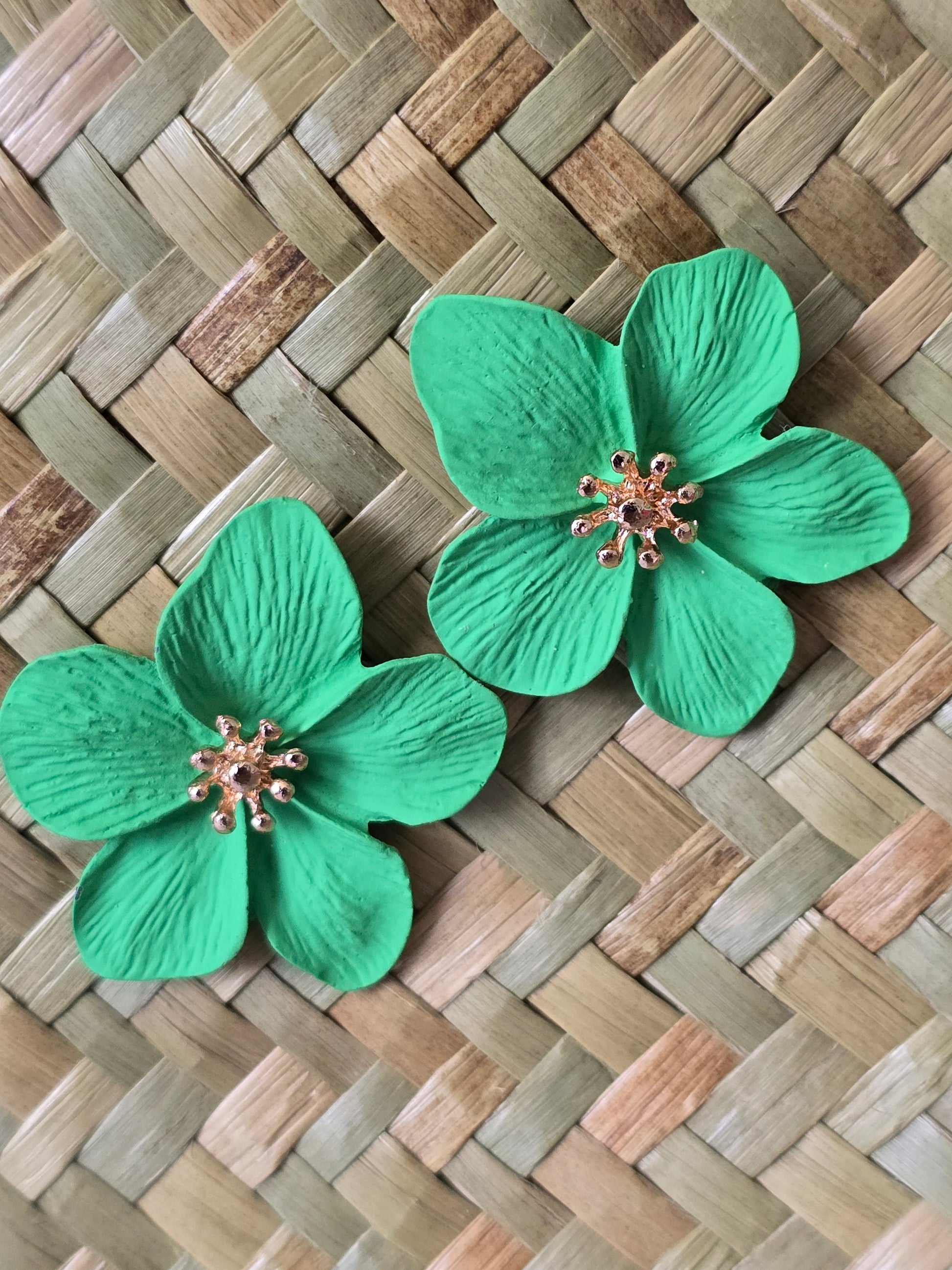 Fun Coloured Flower Ceramic Stud Earrings Green - Pacific Collection