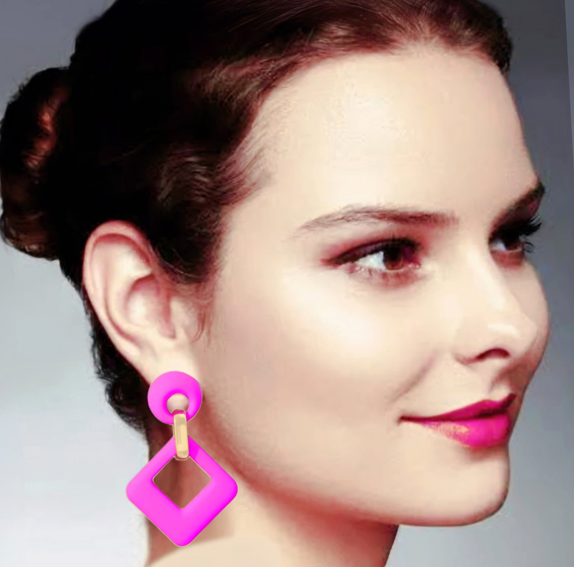 Introducing MoUi's New Bold Dangle Colours Range in sleek pink. Explore our collection of Acrylic Dangle Earrings, featuring high-quality materials such as Stainless Steel Ear Needles, for a modern and sophisticated addition to your jewelry collection.