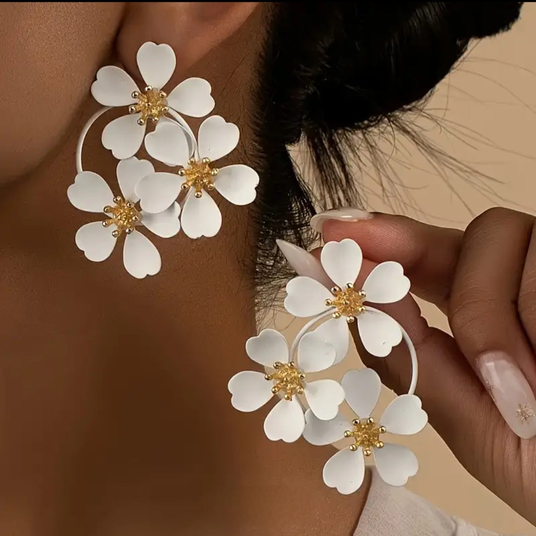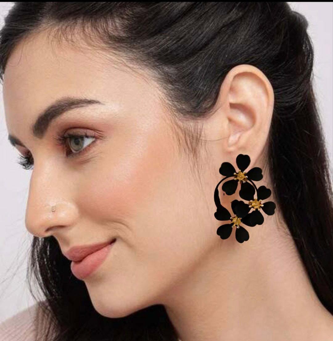 MoUi. Bold Elegant Camelia Black Drop Earring