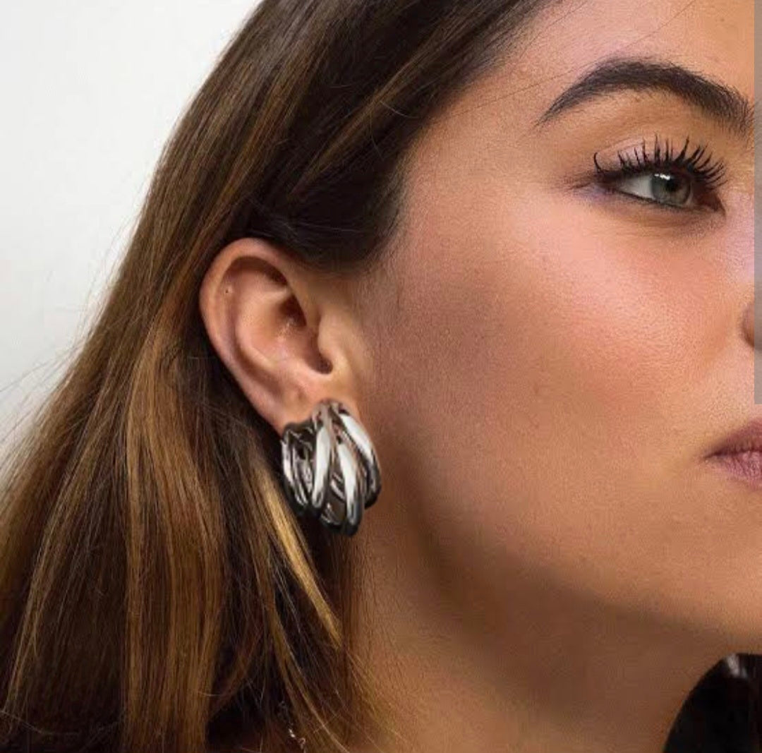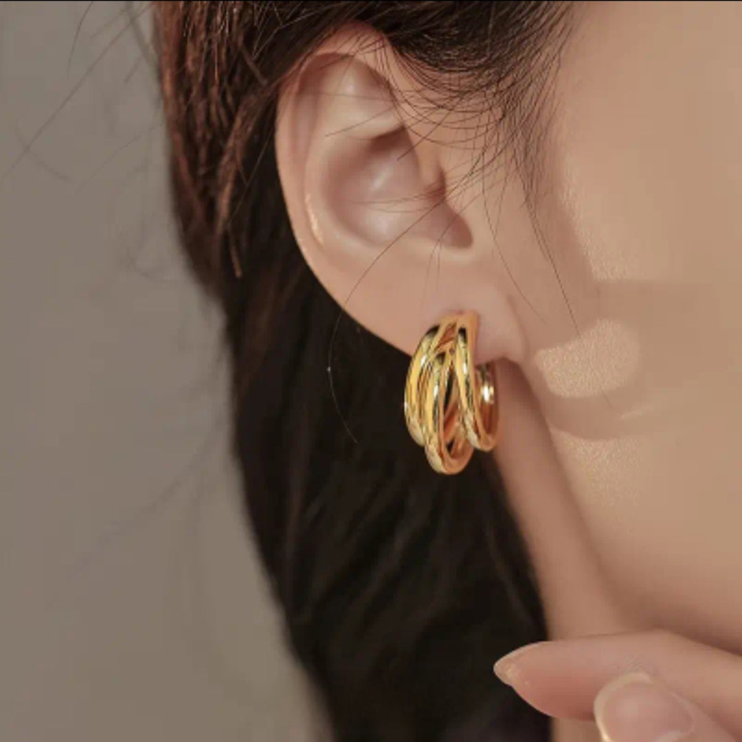 MoUi. New Tri-Layer C-Shaped Silver Coloured Hoop Earrings