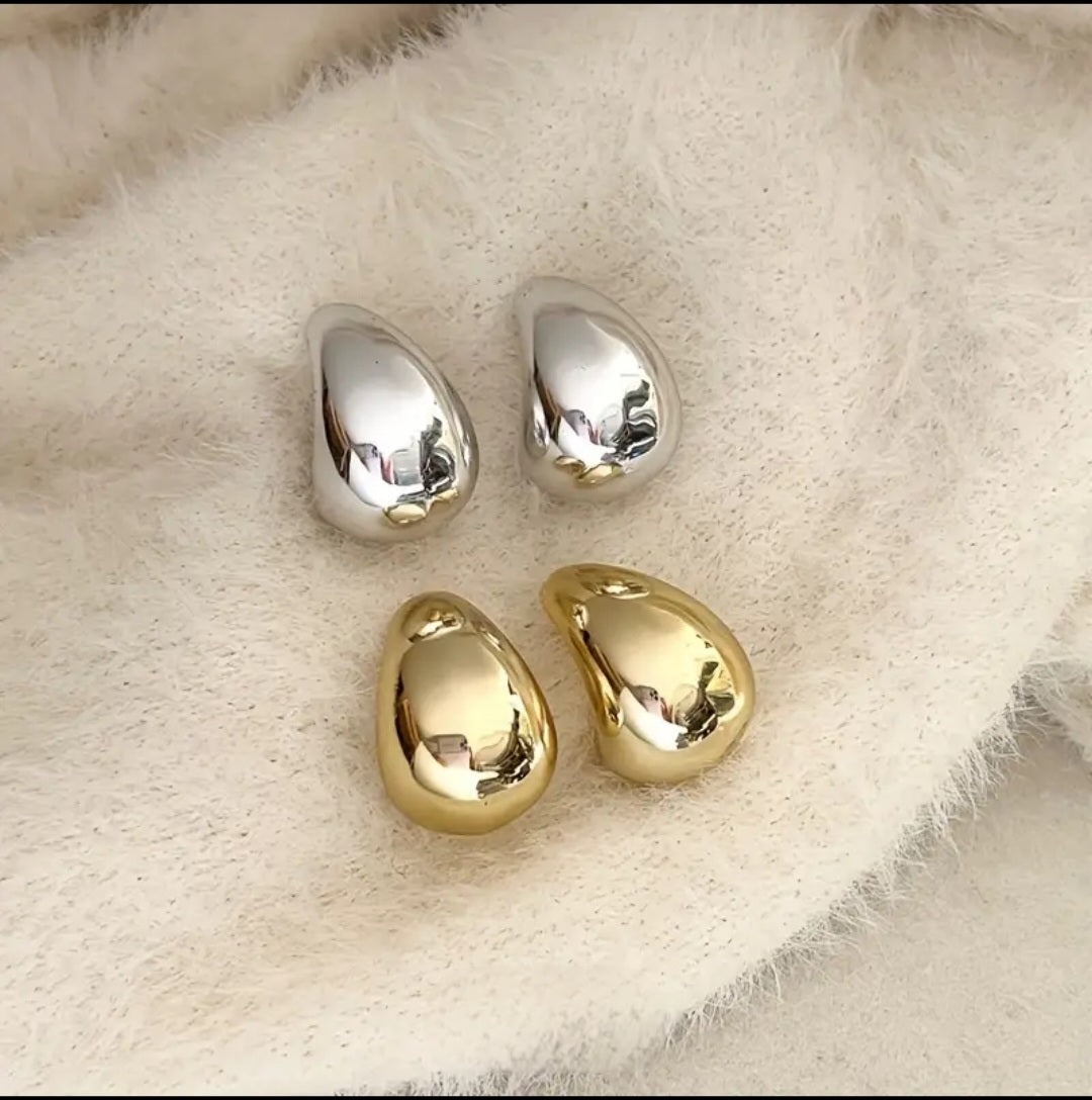 Minimalist Elegance, Geometric Silver Teardrop Alloy Stud Earrings.