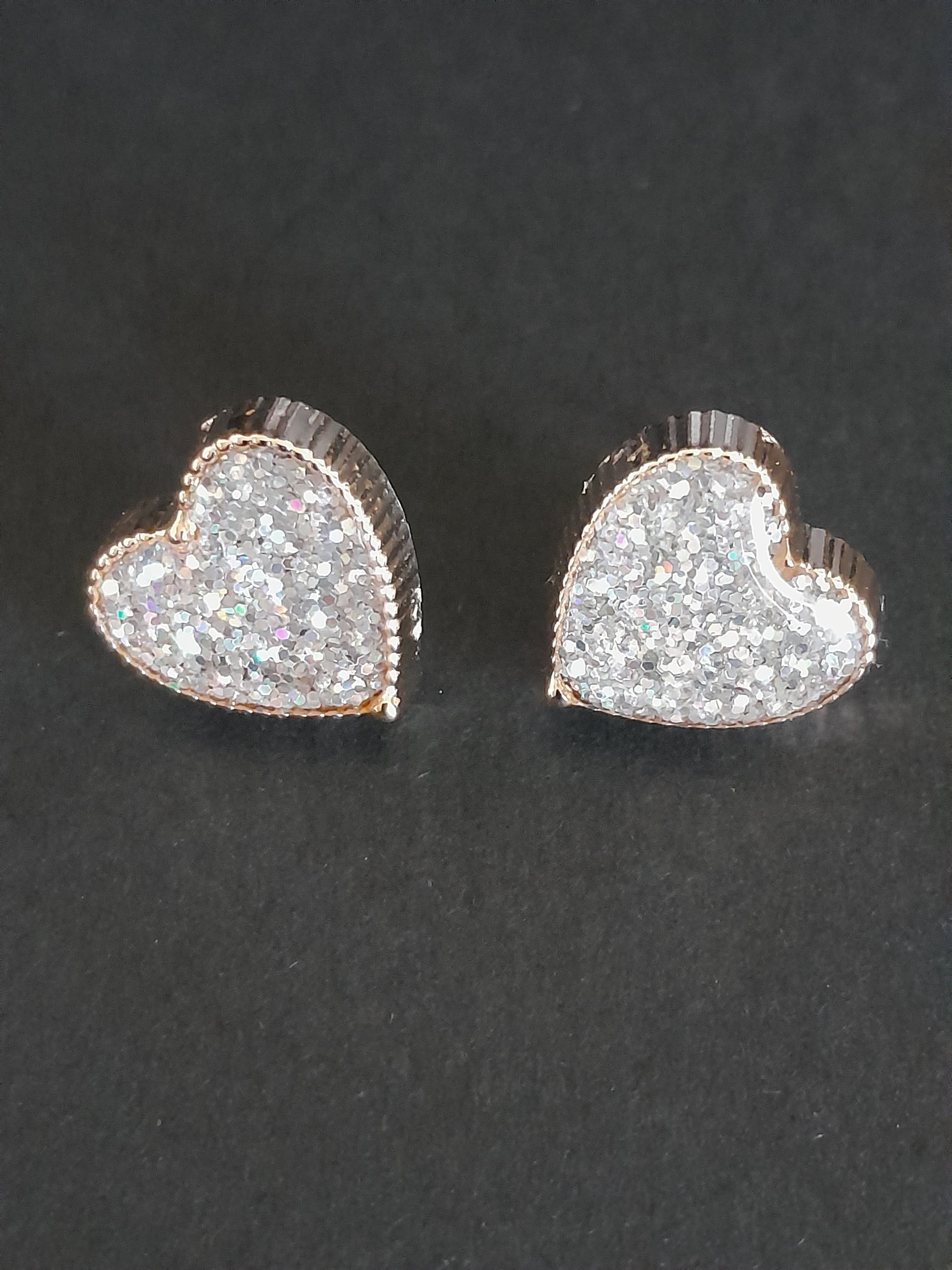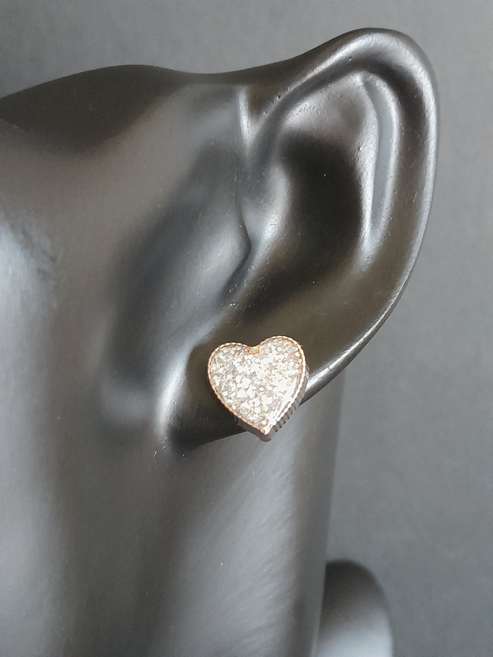 Pretty Gold Heart Glitter Stud