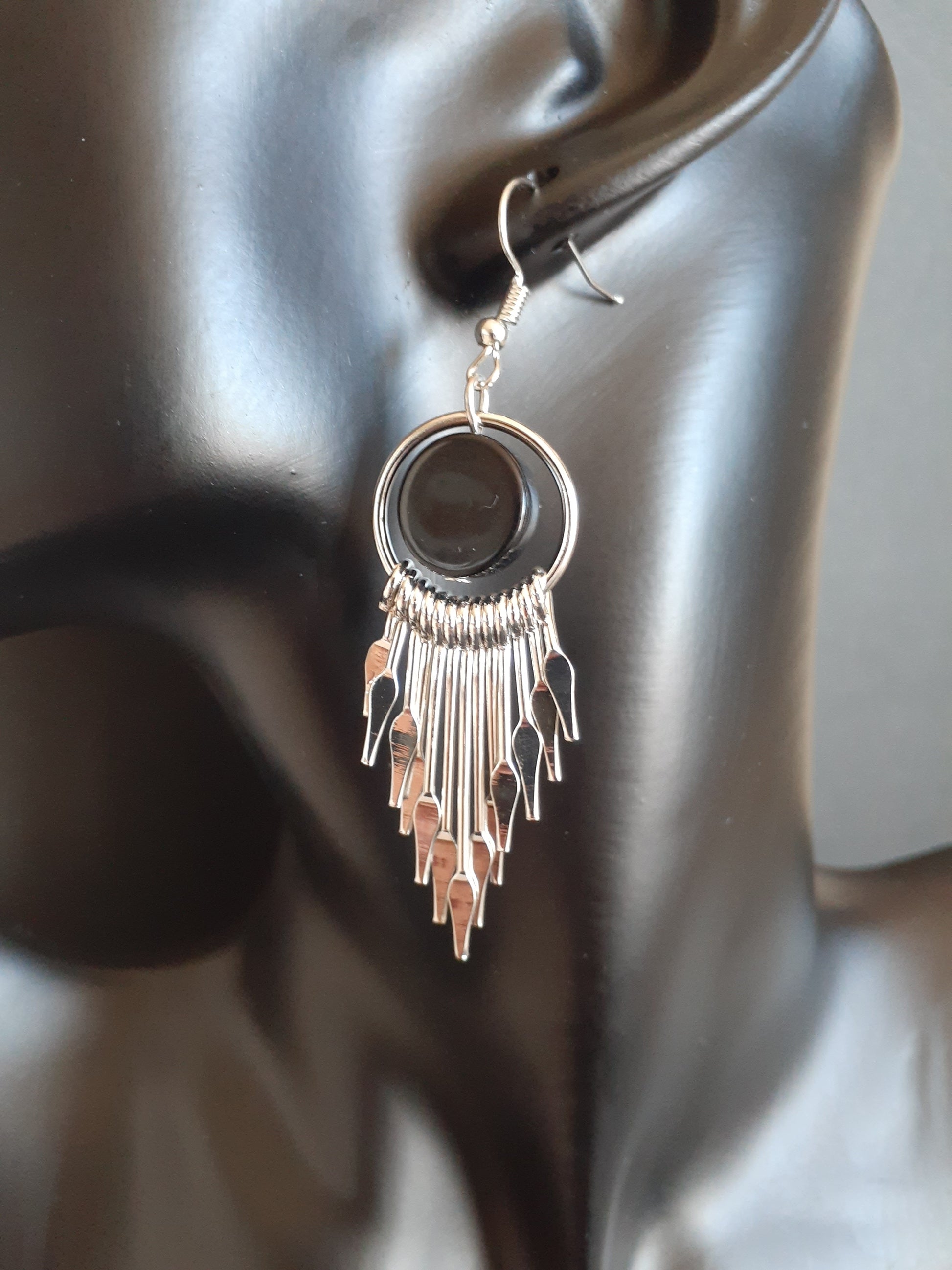 MoUi. Stunning Silver Circle Black Line Drop